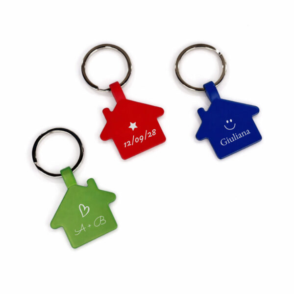 Il portachiavi casetta in alluminio diventa unico grazie all’incisione personalizzata: un nome, una data, un simbolo speciale che racconta una storia tutta tua.