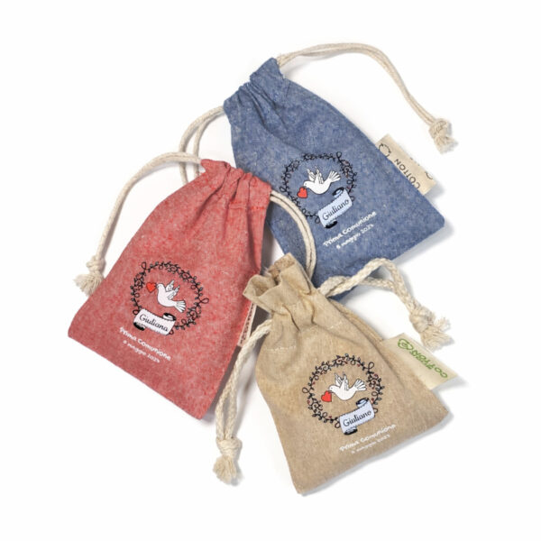 I sacchetti bomboniera personalizzati in cotone riciclato sono una soluzione elegante e sostenibile per celebrare momenti importanti come Comunione e Cresima.
