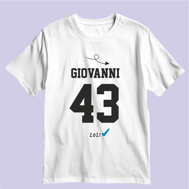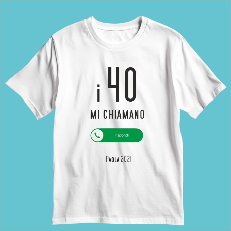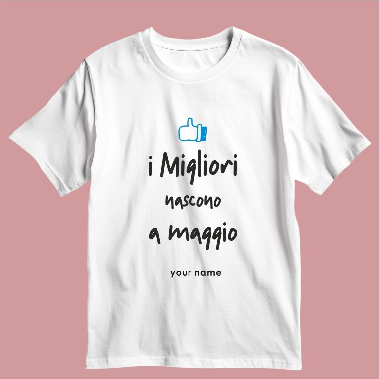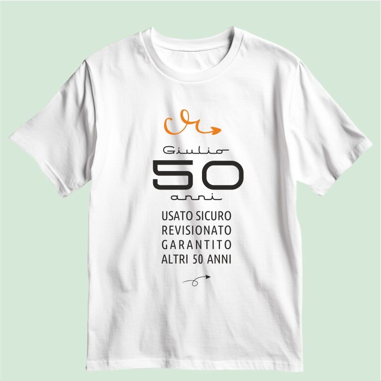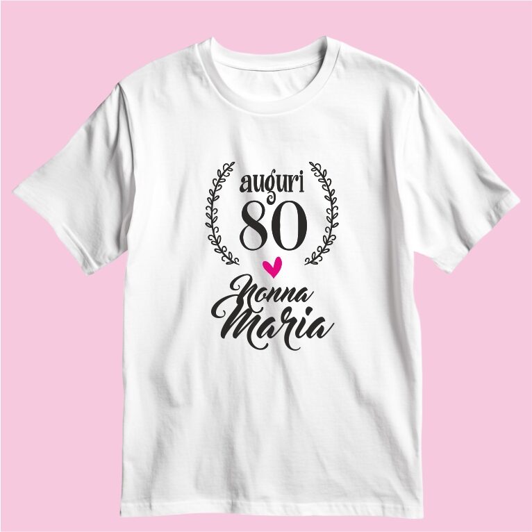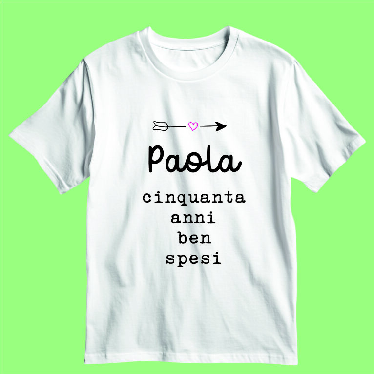 Maglietta in cotone personalizzabile con scritte, grafiche e nomi a scelta tra una gamma di proposte divertenti, ideali come regalo per occasioni speciali. Disponibile in diverse taglie.