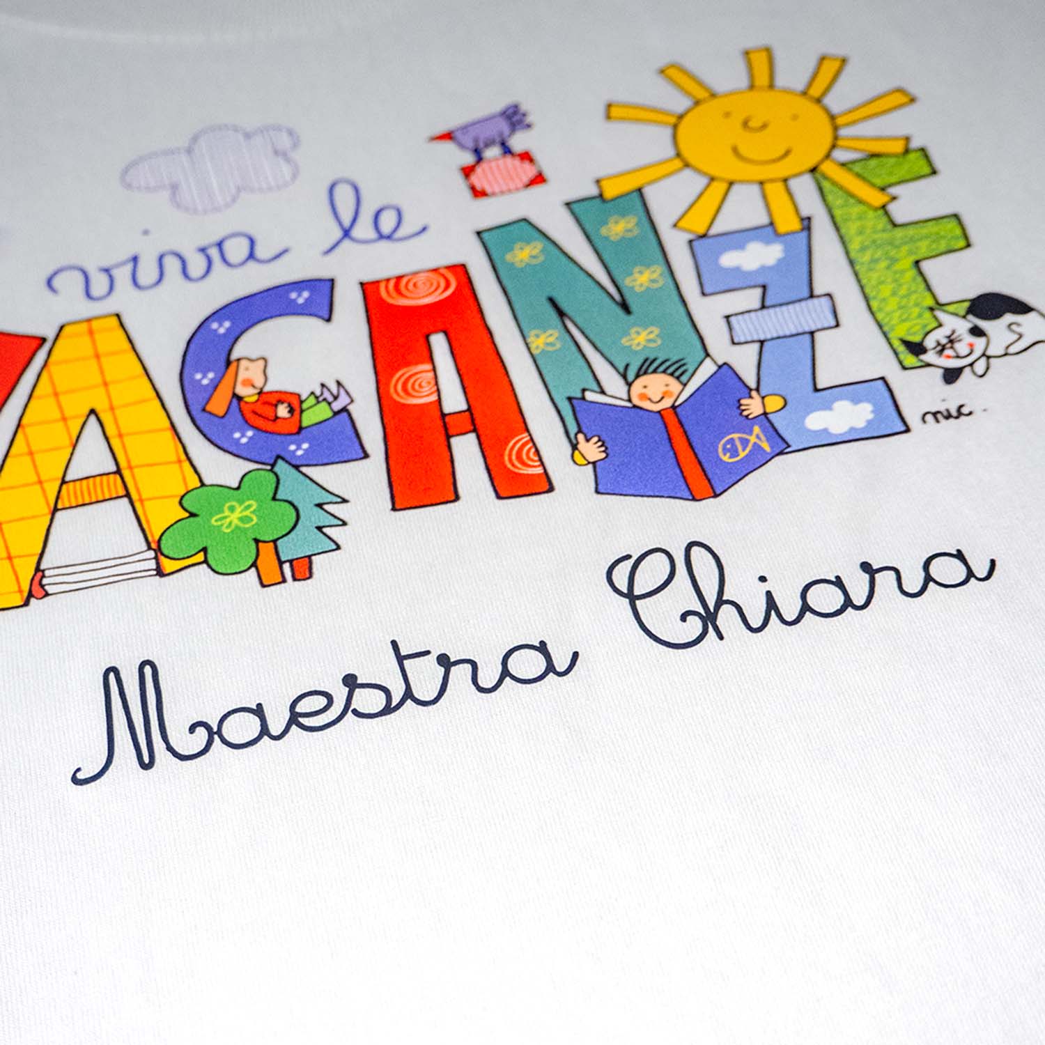 Maglietta unisex in cotone con illustrazione “Viva le vacanze” di Nicoletta Costa, fondo bianco